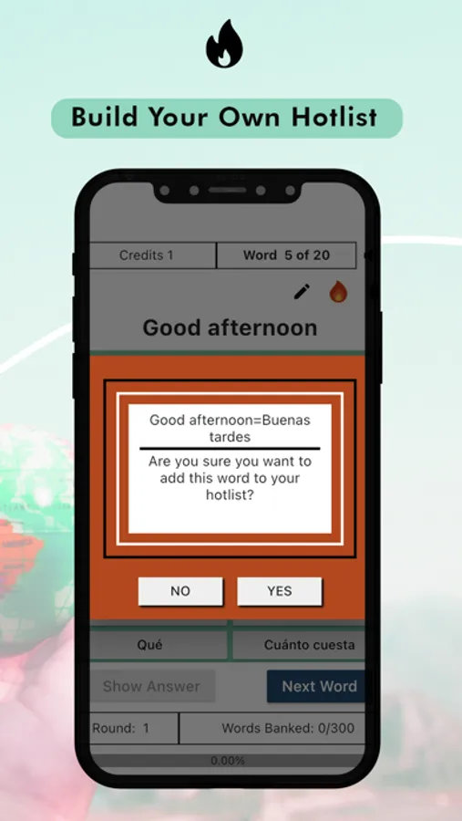 Learn any language and build vocabulary by understanding the meaning of the word compared to the same word in your native language. Tap the fire button and expand your vocabulary with new words. Go back to the Hotlist section to improve your vocabulary and learn different languages.