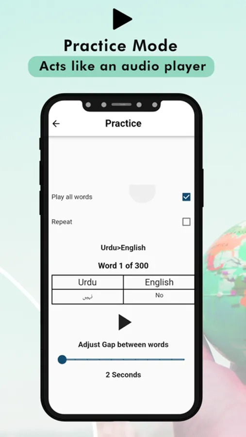 Ideal for when you driving and unable to interact. Acts like an audio player where you will hear the word and translate it to yourself before the answer is given.