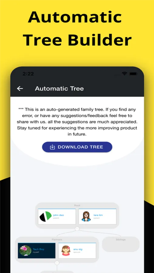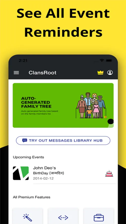 ClansRoot is an event reminder and family tree maker, or builder app, Where users can register themselves, and after adding all of the important persons in the members list such as family, friends, and relatives with the essential information including important events date you will get reminder alerts based on these events dated.