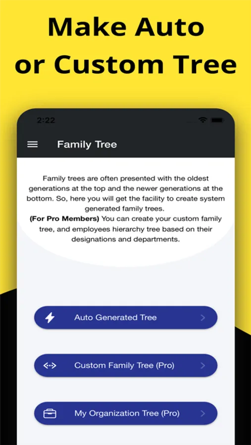 Also, our system will create a family tree based on the family members list. You will also get some additional features like an in-house message library to send greetings and messages to loved ones, custom events addition, custom tree creation (pro), organization hierarchy tree maker (pro), or many more upcoming.