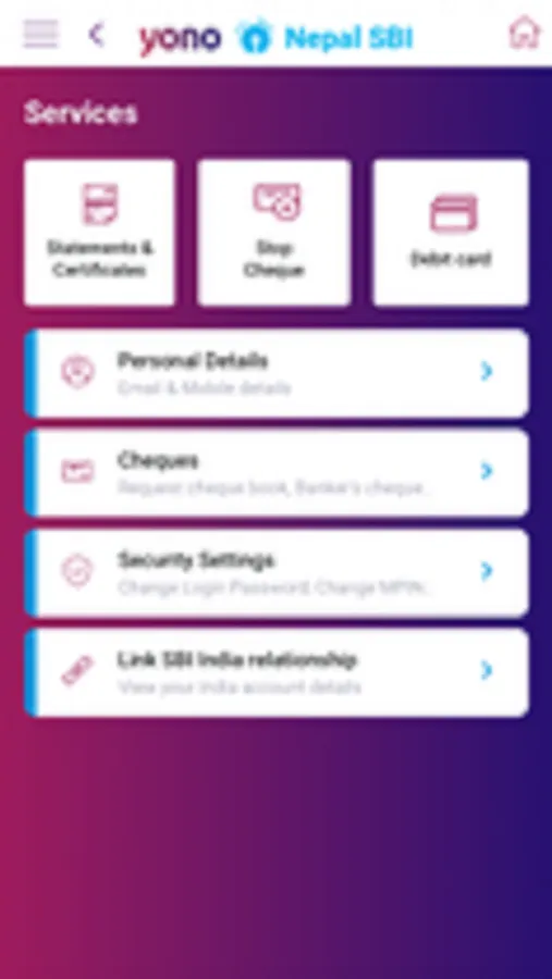 With a strong focus on customer convenience our latest mobile banking offering, YONO Nepal SBI is an application for our retail customers. Download the app now and enjoy the revamped banking experience with attractive features such as e-KYC updation, Online Term Deposit account opening, NPI integration, QR Payments, various Bill Payments though NCHL & F1 Soft, Merchant Payment by Fonepay, Deposit Interest Certificate / Statements, Cheque Book inquiry, Card Management, Spend Analysis, Chatbot etc. The mobile banking services of MeroSaathi will be migrated to YONO Nepal SBI, Fund transfer within NSBL, TD for existing customer, RD for existing customer, One View India Account, Spend Analyzer etc.