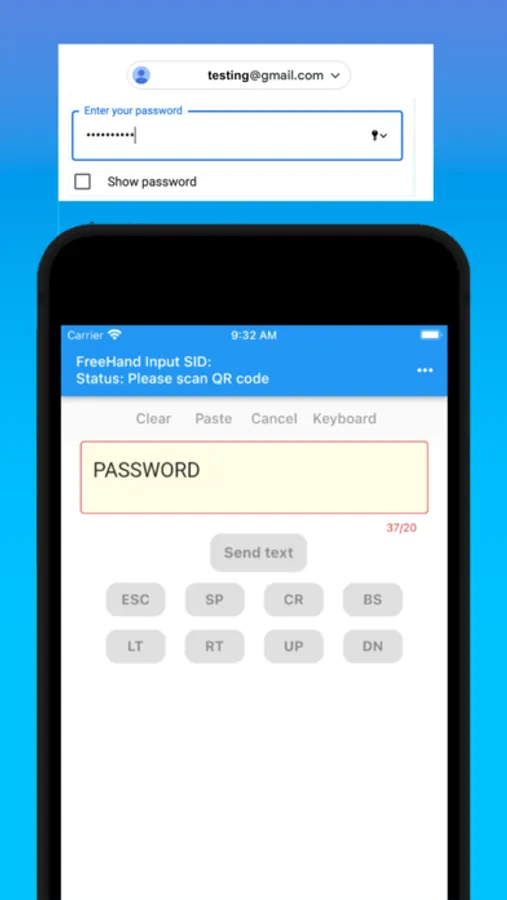 After device connected, you just click the password field and press load and send button in you mobile device than the password be inputed automatically.