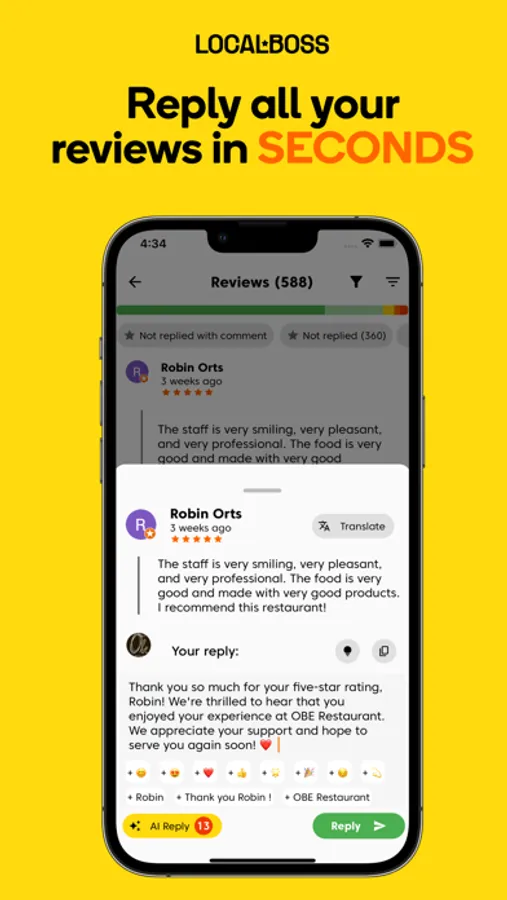 - AI-Assisted Replies: Respond to reviews with the help of AI, ensuring you always sound professional and engaging.