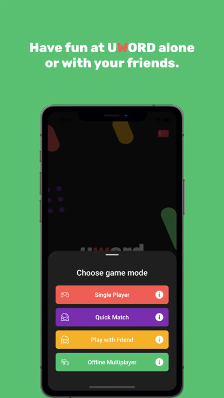 Unlike a regular crossword, you can play Uword with others as well! You can take turns with your friends on the same device, or you can play with people from around the world in the online multiplayer mode.