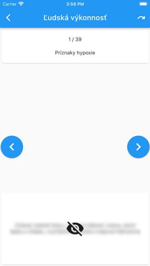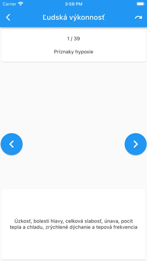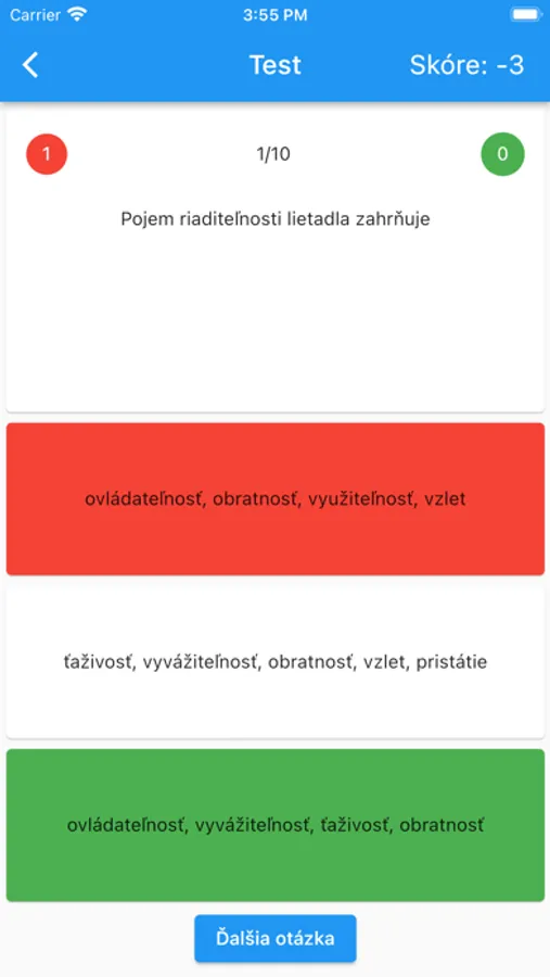 Aplikácia umožňuje nie len testovanie otázok, ale aj učenie. Prvý, teda učiaci sa režim, vám zobrazí otázku a odpoveď. Ak budete alebo nebudete vedieť, kliknete na odpoveď a skontrolujete si ju. Táto metóda umožňuje postupne si prechádzať otázky.