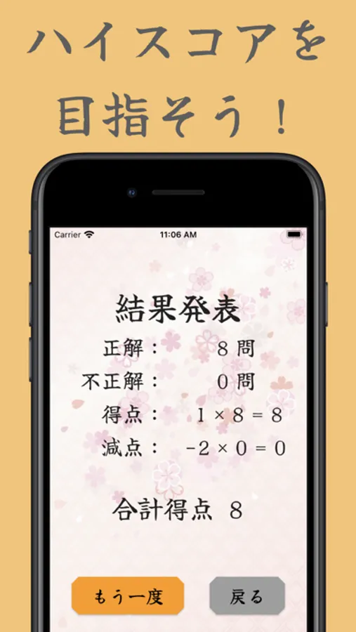 3. 正解すると次の問題が出題されるので、次々とタップして、ハイスコアを目指しましょう!(正解、不正解の回数でポイントがつきます)