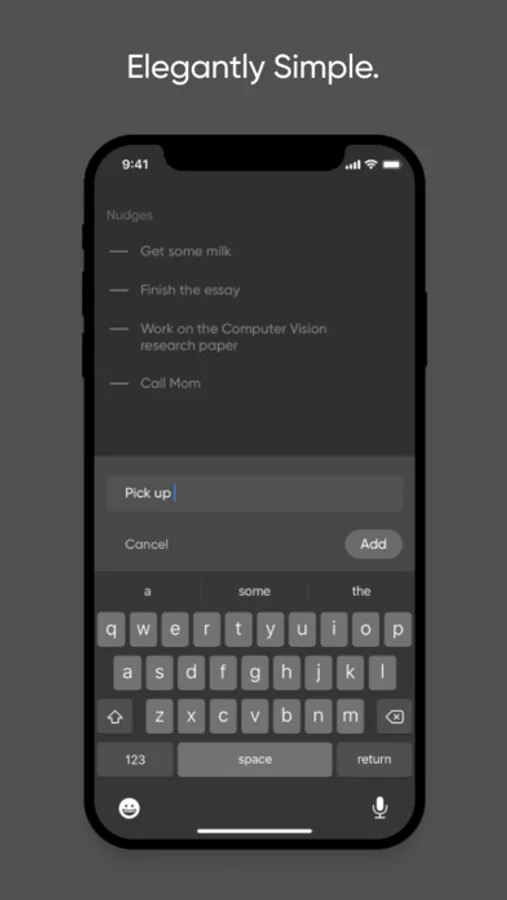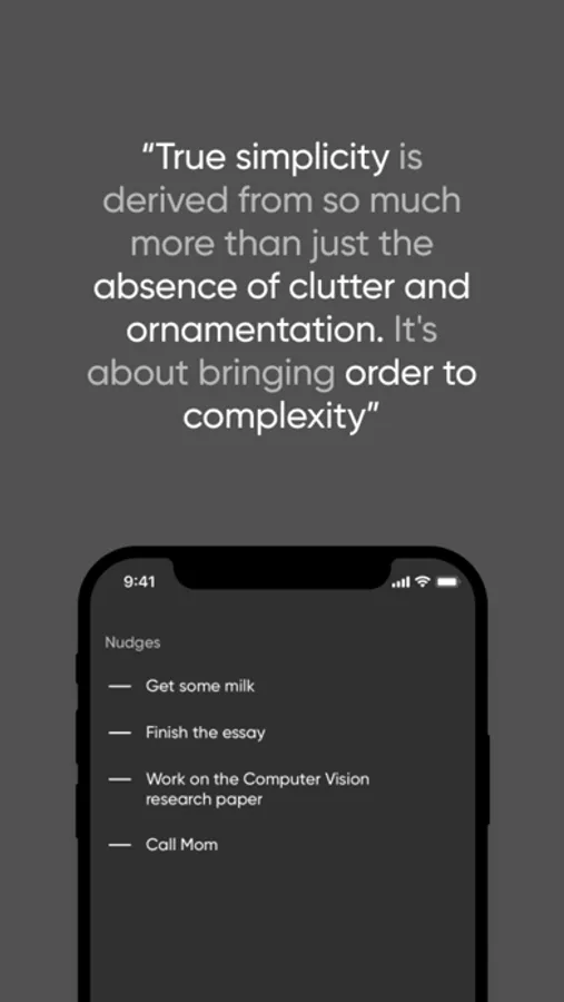 Nudges is an uber minimalist to-do app. It is designed to be quick, easy and distraction free. Just add a task and swipe to delete it and tap to edit it, it's as simple as that.