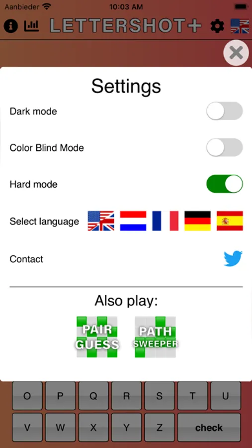 Lettershot+ is a word game in which you can find a word by guessing letters.
