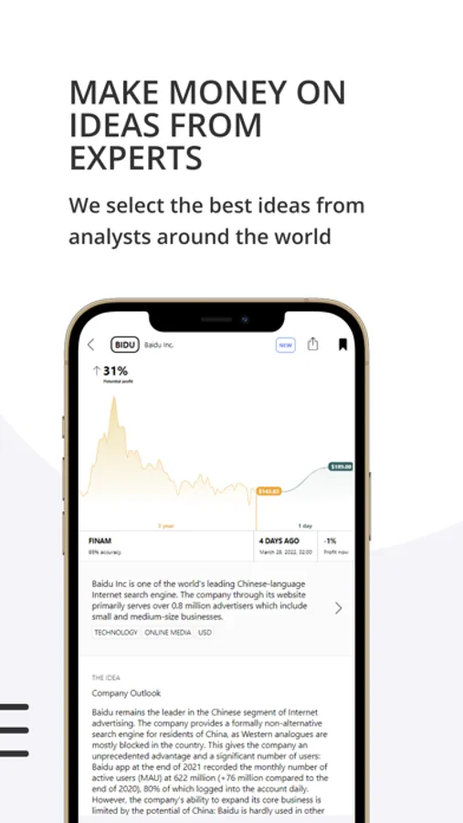 Stock Insights aggregate the best investment ideas and forecasts from the most trustful experts on the market. Stock insights app offers forecasts covering a wide variety of financial instruments such as stock, forex, crypto, ETF, etc. We simplify investing ideas, providing you firm target price and horizon. Get informed investment decisions and timely insights. Jumpstart your financial goals with Stock Insights app. Terms of Use: https://www.apple.com/legal/internet-services/itunes/dev/stdeula/