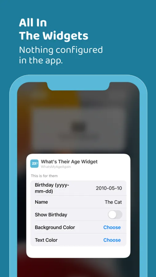 This app is not only for your own age though! We all struggle with remembering ages of loved ones. There is a second widget that can be used for: