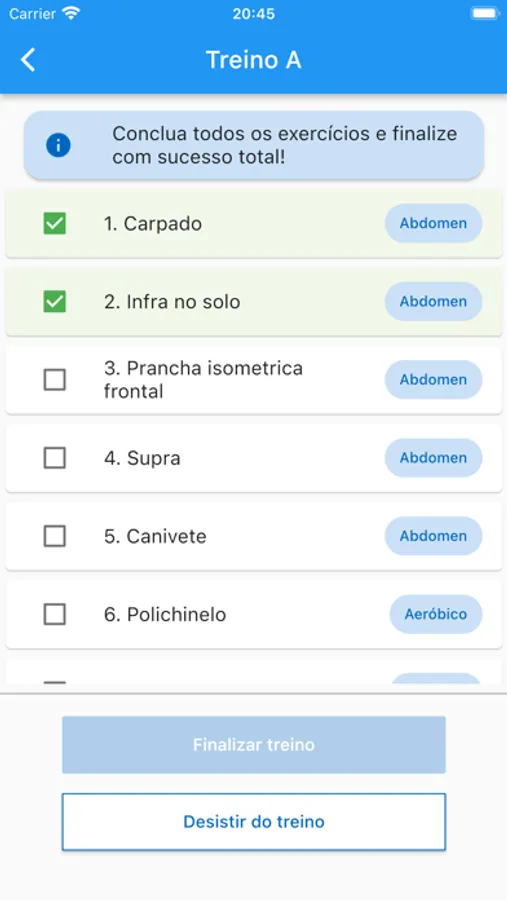 Com os menus Meu Treino, Atividades, Horários, Localização e Contato.