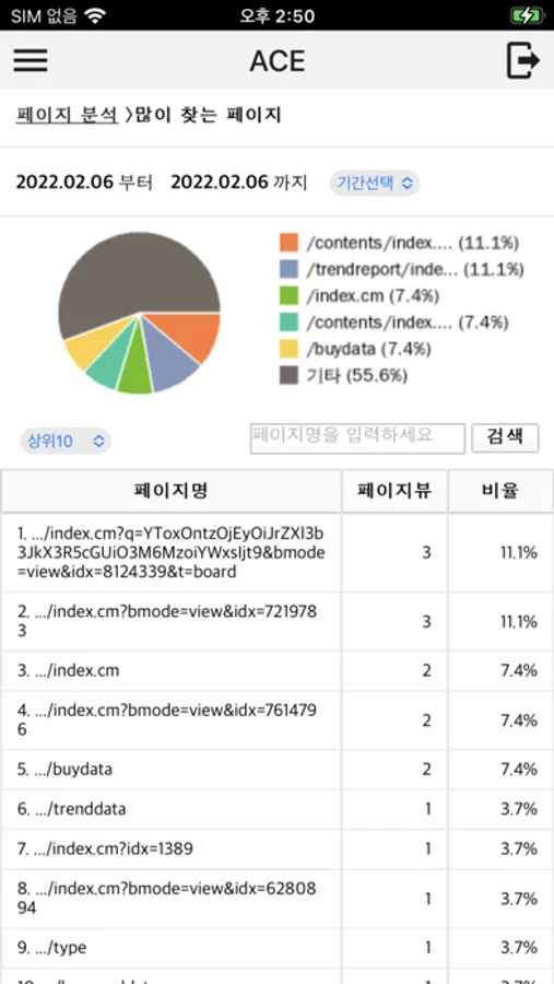 대시보드에서 각 지표를 클릭하면 상세 리포트 화면으로 이동되며,