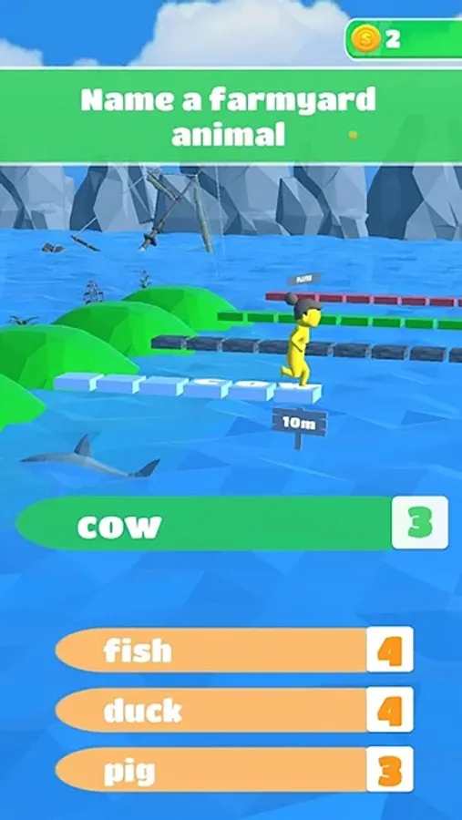 The longest trivia answer wins! Answer each question with the longest word you can think of to race against other players and escape the sharks in the water!