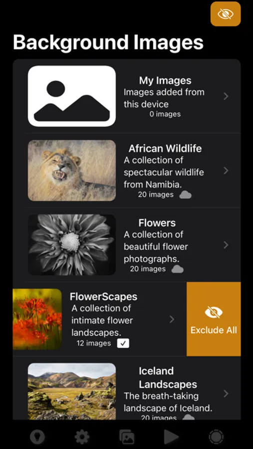 PhotoClock Pro is fully integrated with Apple Music. You can search and select your favorite songs and albums from Apple Music and play them directly in PhotoClock Pro. The music player can be moved through six different screen positions, minimized, or hidden while keeping the music playing. You can configure up to four dim and wake actions assigned to the screen background quadrants. Set up the duration of the dimming and waking, and select your favorite song or album to play and fade out as your screen dims. You can also have your music fade back in as your screen brightens or start playing after your screen has brightened. Once configured, double-tap the background in a screen quadrant to start your dim/wake action, and enjoy your photos with the stylish analog clock and your favorite music. It doesn't get much better than this!