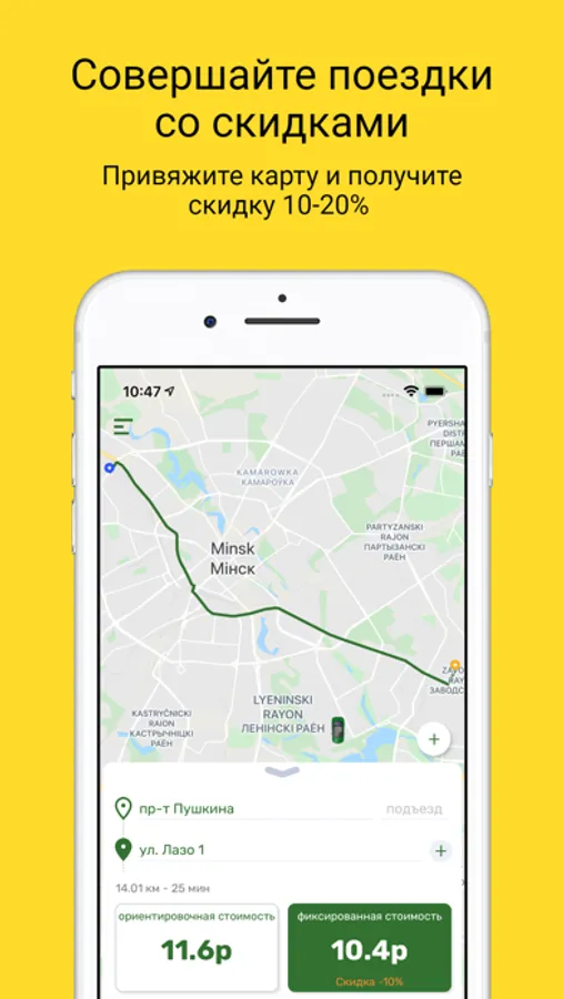 Приложение «BY такси» позволяет заказать автомобиль-такси с помощью электронной информационной системы с функцией оплаты в безналичном порядке, путём списания денег с банковской карты клиента, заранее привязанной к приложению. Стоимость поездки известна при заказе автомобиля-такси, используется дифференцированный тариф. Предусмотрены скидки до 20% в зависимости от времени суток, дня недели.