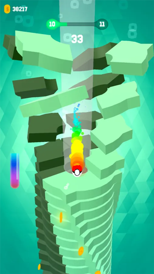 Press and hold on the screen and let the ball go down without touching the obstacles! Hold as long as possible to make combo and break the black blocks. Let the ball fall down from the helix stacks.