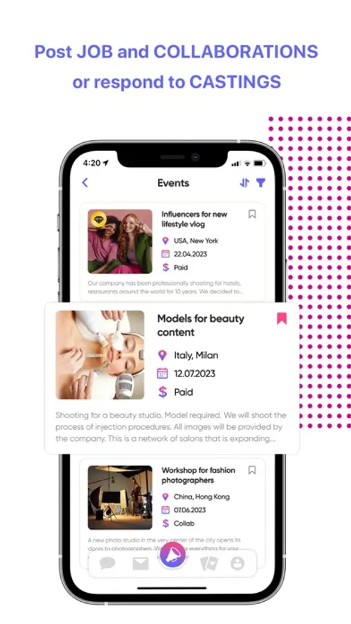 We've brought together models, well-known agencies, brands, dancers, actors, photographers, muah, Djs and producers from around the world into one international community. Search for talents or participate in castings!