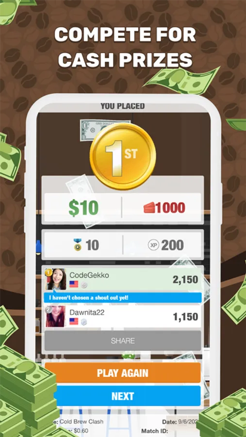 Battle against other real Skillz bingo players in skill-based head-to-head or tournament bingo games where you play until the time, the bingo balls or the Coffee Fanatic's coffee supply runs out! High score wins real money!