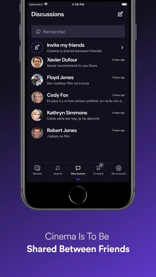 Send and receive movie recommendations, share your opinion... Whether you are a binge-watcher or a movie cinephile, Movizer is the App for a Cinema between Friends.