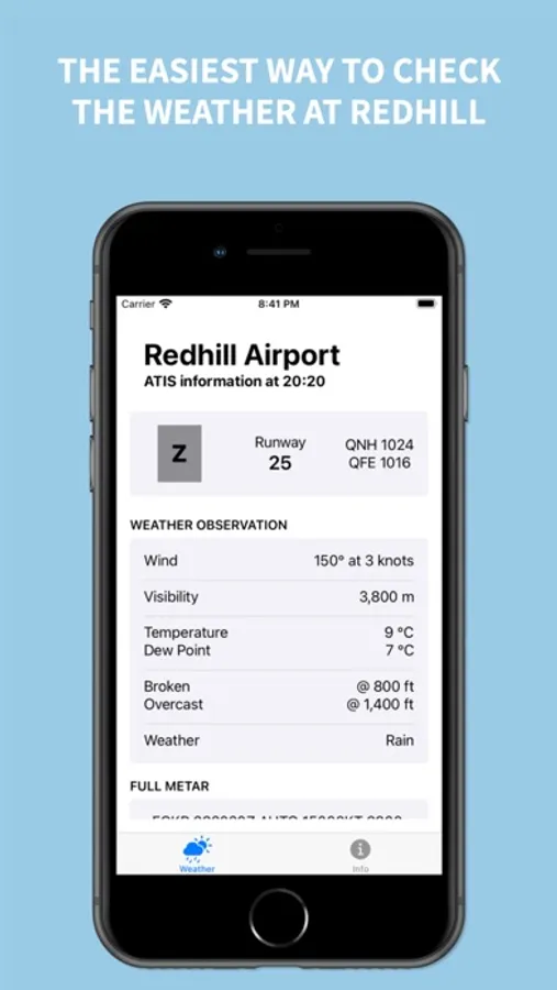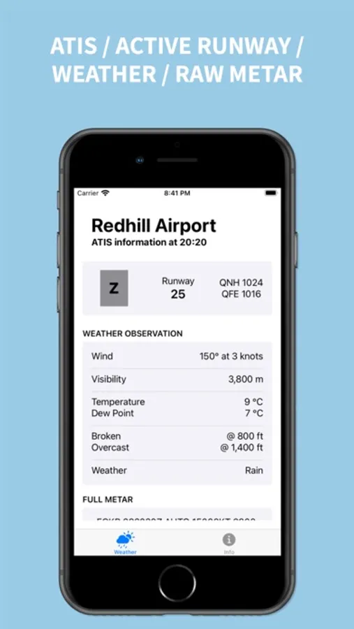 This app allows you to check the ATIS and weather info for Redhill Aerodrome in Surrey, UK. With Redhill ATIS app pilots can check the last weather information as well as ATIS information using the phone instead of accessing to the website.