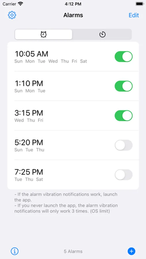 - Vibration notification while the app is running