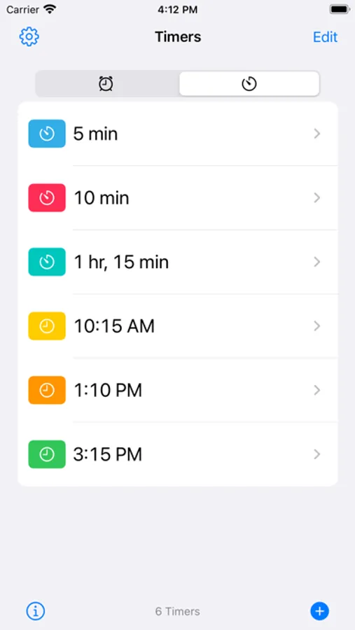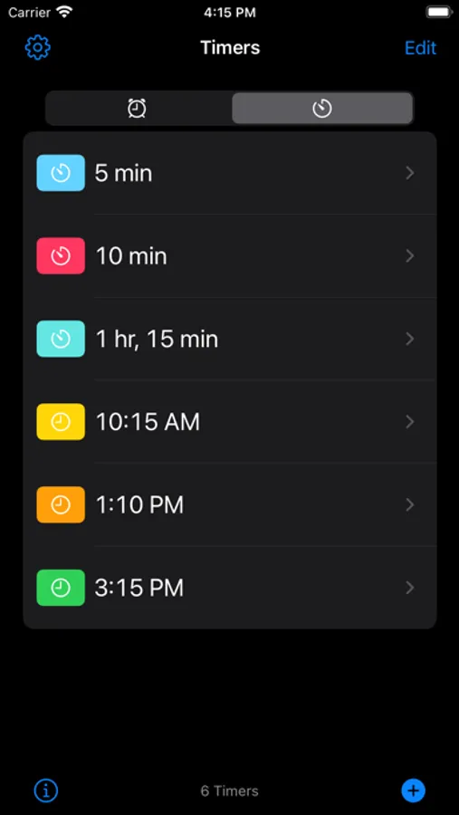 - Any number of preset alarms and timers