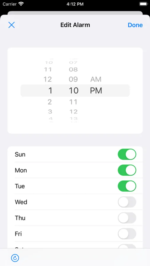 - Repeat alarm setting (day of the week can be selected)