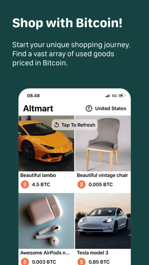 Welcome to Altmart - your premier platform for buying and selling used goods, with Bitcoin as the primary currency. Uncover a variety of treasures, from everyday items to unique finds, all within a user-friendly interface and listed in Bitcoin.