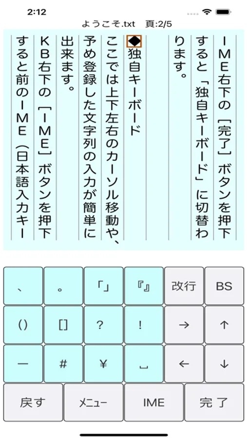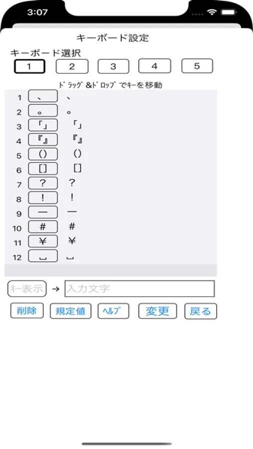 独自キーボードには、12キーx5パターン=60キーが登録出来、
