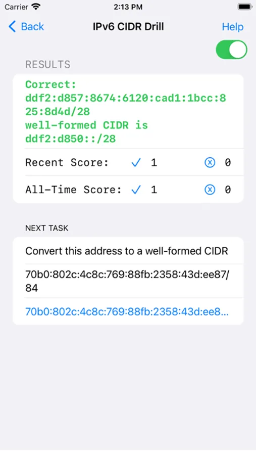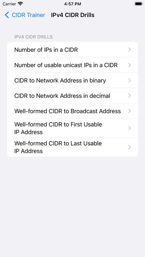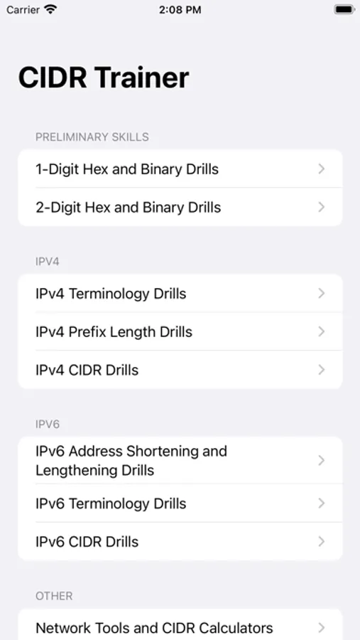 You may try each training drill for free 20 times. After that you may try the other drills or purchase a permanent unlock of all training drills for a low price (see in-app purchases for the "forever full-unlock" price in your region). One purchase unlocks all versions of the app (iOS, iPadOS, and MacOS). CIDR Trainer uses iCloud to sync drill progress between your devices.