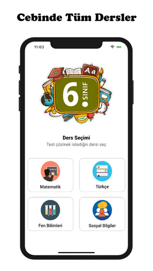 6.Sınıf Tüm Dersler uygulaması her nerede olursanız olun derslerinize çalışmanıza imkan sağlamaktadır . Konu testlerini çözerek bilgilerinizi pekiştirerek konuları birer birer bitirebilirsiniz.