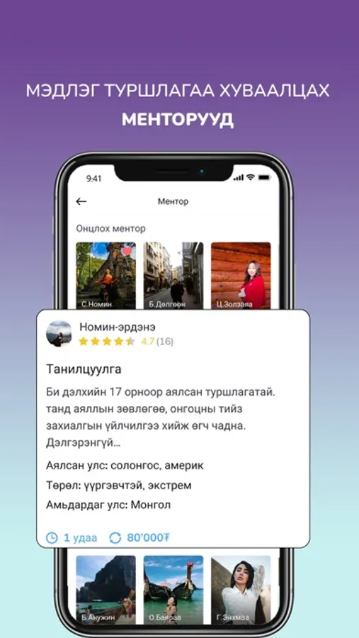 Аялахад хамгийн том бэрхшээл юу байдаг вэ? - Таны бэрхшээлийг шийдэх цэгцтэй үйлчилгээг бид санал болгож байна. Үнэ төлбөргүй зөвлөгөө мэдээлэл, аяллын өртөг тооцоолох боломж, таны аялалыг бүтээлцэх хөтөч, аяллын маршрутаа ярилцах боломжтой менторуудаас сонголтоо хийж өөрийн аяллаа өөрөө бүтээгээрэй.