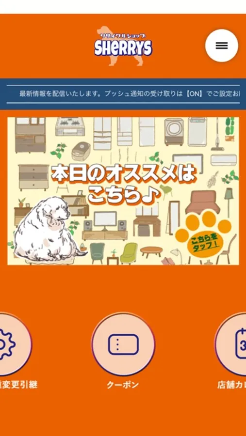 メニュー、最新のお知らせはもちろん、限定のお得情報がアプリに届きます。是非ご確認ください!