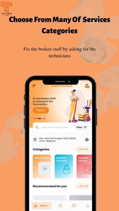Tip-Topp is On-Demand Service Apps! We have taken multiple steps to ensure a hygienic service experience in the safety of your home or office. Our professionals wear masks, gloves & sanitise all equipment before service. Through the app, you can book at home or office services - from beauty & wellness for women & men, to home repairs & maintenance, such as AC servicing, electrician, plumber & carpenter. The complete list of at home and office services is as follows: