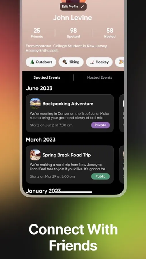 Based on your interests, Spotlyte will recommend events that may interest you and will even distinguish and suggest other events to you to try and expand your horizons in new ways. Spotlyte makes hosting events easy. You can quickly share all relevant event information with just your friends or your entire college community, and Spotlyte will even help you judge event attendance in advance!