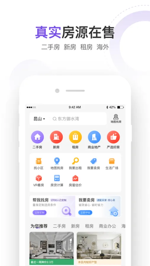 长三角地区的房地产综合服务平台,提供新房、二手房、租房等多种服务,根据自己的需求来搜索到符合要求的房源,房源真实可靠。专注于二手房,新房,租房,为您提供最新最全的房源信息。真实房源在售,定制找房需求,为您匹配精准房源。VR全景看房,足不出户看好房!
