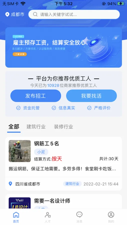 百万大军劳务是一款为用户提供方便快捷的招工找工平台,用户在这里,找到自己满意的工作或工人,精准为客户推送相关信息,让用户不再轻易错过感兴趣的信息。