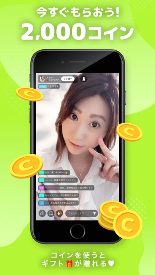 一切のアダルト行為を禁止し、男女どなたでもLIVE配信ができ、リスナーとなり、1人のライバーに複数のリスナーがコメントで応援できる健全なアプリです。