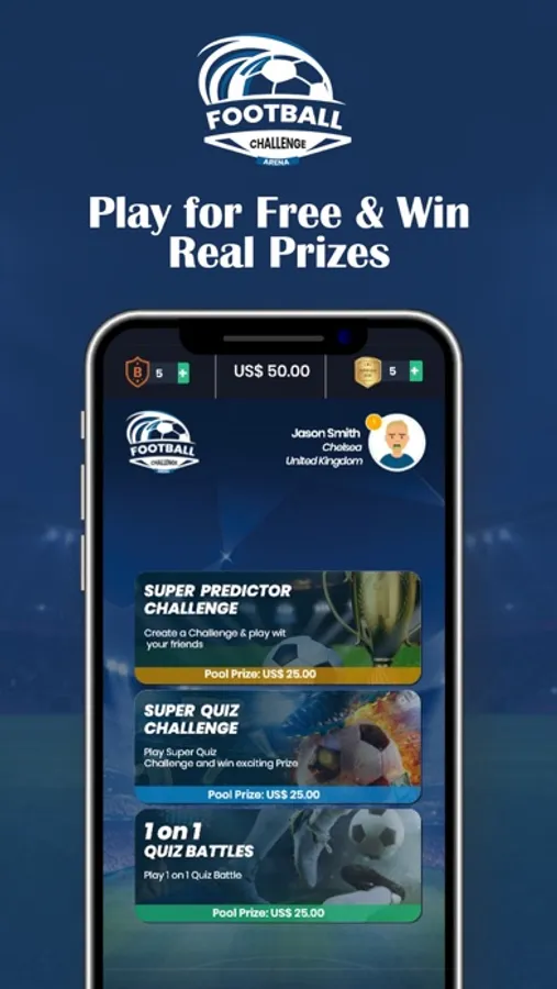 Football Challenge Arena is the ultimate Football app that test your knowledge about your favorite sports with the aim to win REAL PRIZES.