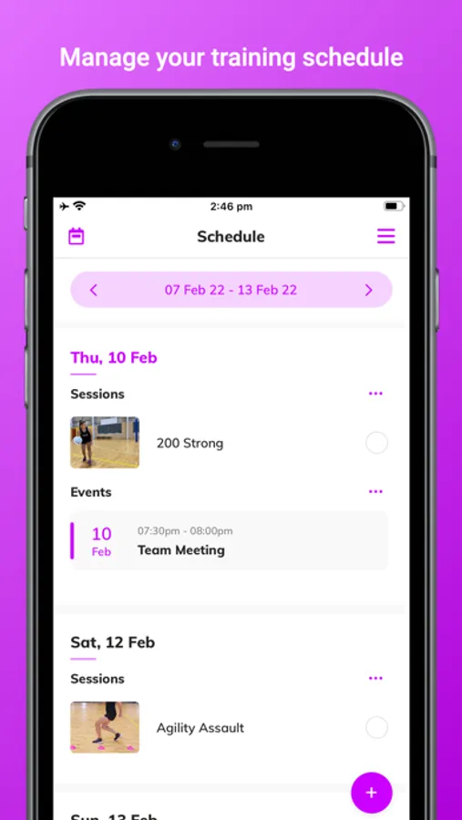 Once you’ve chosen one of ours or created your own session, add it to your in app Scheduler. You can plan your team training schedule weeks or even months in advance. You can also create events such as team meetings to keep track of all your netball calendar events in one place.