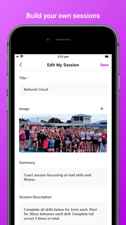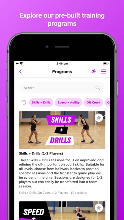 Pre-made individual and team focussed programs created by professional coaches and trainers, over 100 full sessions already available covering all types of on and off court training. Plus a library of hundreds of exercises, skills and drills to build your own session. New programs, sessions and drills added regularly. You can also upload and create your own drill library and keep session notes to refer back to.