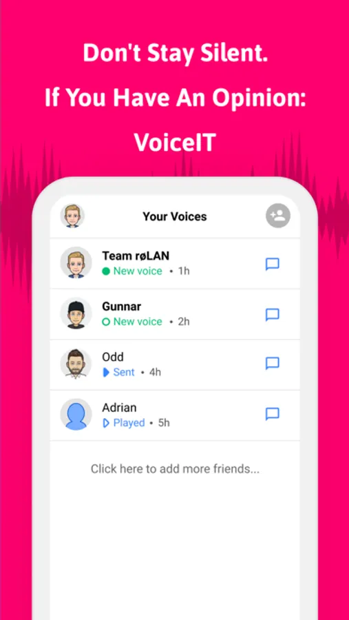 The world is getting more complicated and people are busier than ever. That’s why we created an extremely handy way speaking to your friends. If you are the kind of person who hates reading long monologues from that one friend, VoiceIT it might just be your salvation We have designed our app around audio. We have made the process of sending off a voice extremely easy. It’s a new era, listen don’t read!