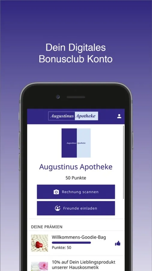 Du willst auch Teil im Augustinus Apotheke Vorau-Kundenclub sein? Dann los! Lade dir die Augustinus Apotheke Vorau-App jetzt herunter und das große Punkte sammeln kann beginnen!