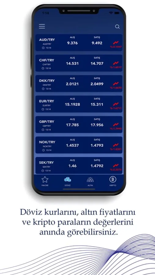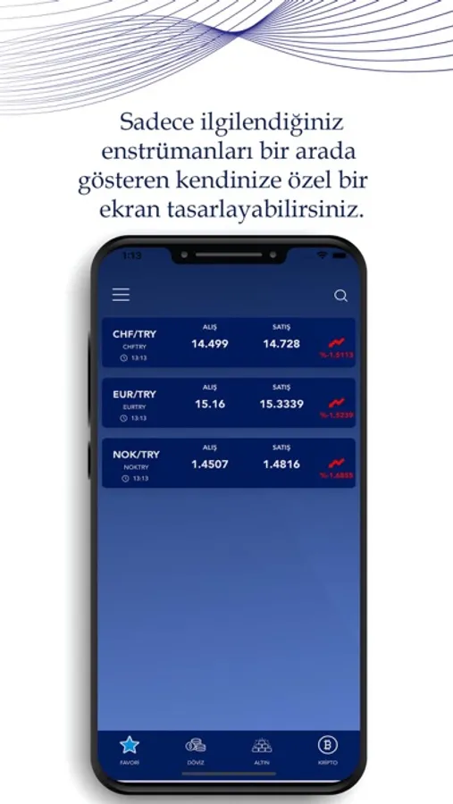-Favori listesi oluşturarak ilgilenilen döviz kurlarına, altın fiyatlarına, ve kripto paralara kolaylıkla ulaşılabilir.