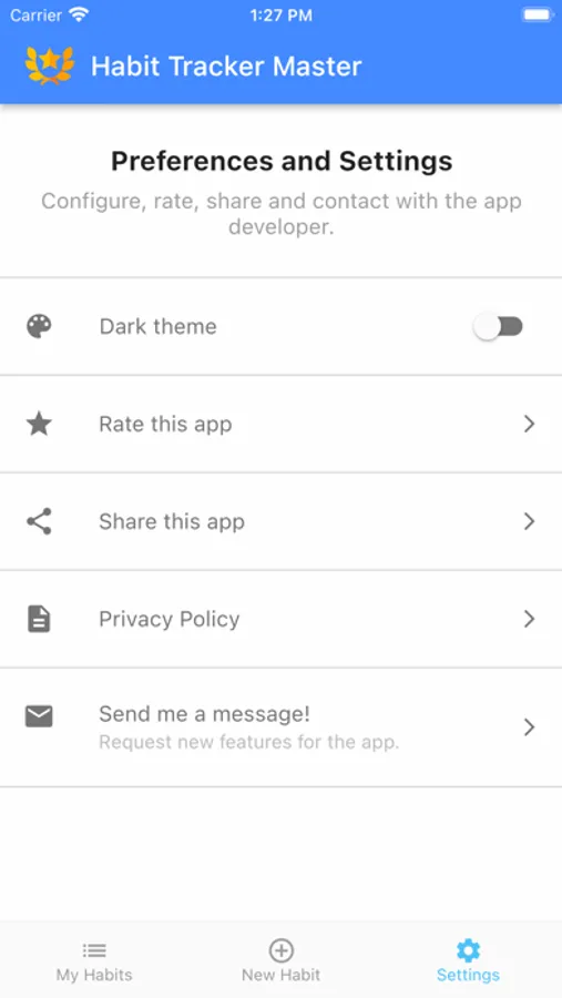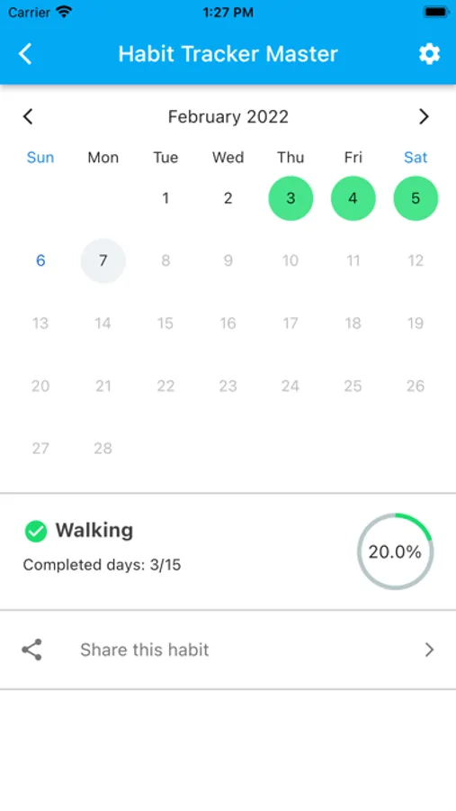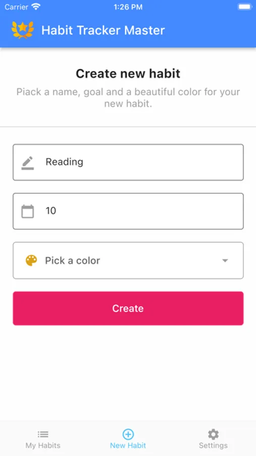 Just create a new habit, choose how many days at least you want to do it and pick a color. After this you could track your progress in a colorful calendar and stay motivated with multiple progress indicators!