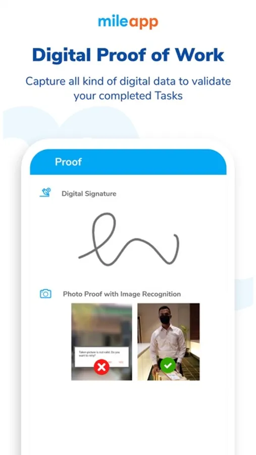 - Proof-of-work with the option to capture photos, collect signatures, or any other digital format.
