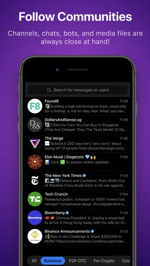Nicegram is more than just a messaging app. It’s a cross-cultural community where you can participate in discussions, connect with like-minded people, explore educational content, and impact the messenger’s future.