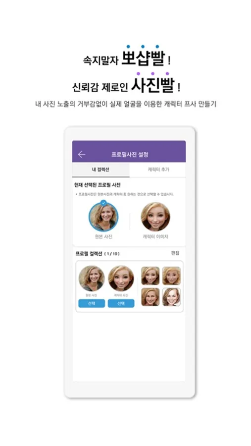 3. XROS에서는 캐릭터 변환 프로그램 (툰 앱)을 사용하여 4가지의 독특한 캐릭터 프사를 제공함으로써 실제 사진 노출의 부담과 허위 사진 등록에 대한 문제를 해소하였어요.