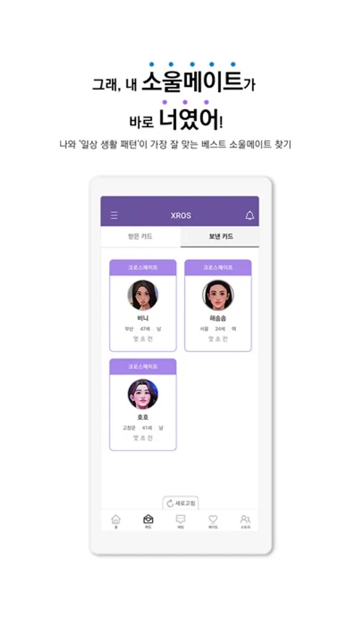 2. XROS에 연결된 리스트중에 호감이 가는 친구에게 ‘친구해요’ 카드를 먼저 보내보세요~