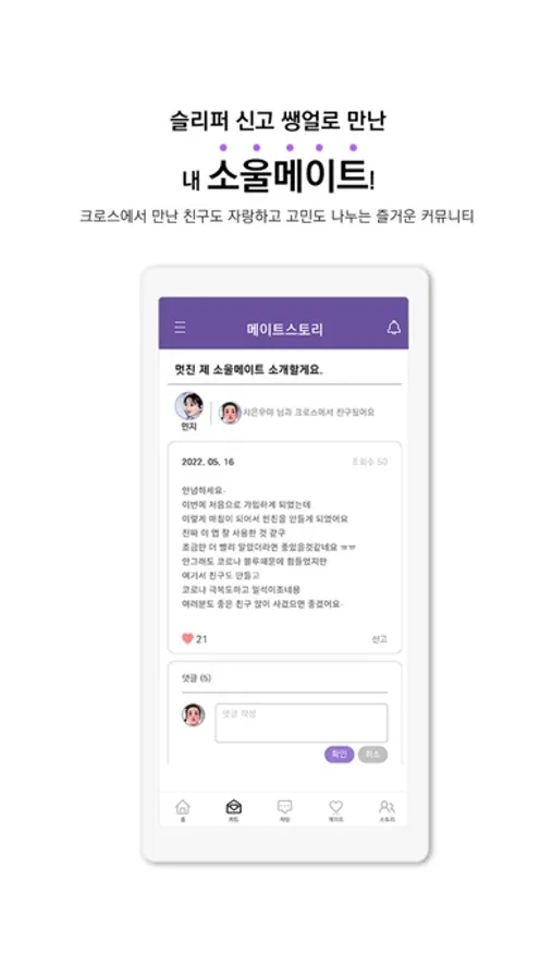 일상이야기, 웃긴 실수, 즐거웠던 경험, 작은 고민 등 메이트스토리 게시판에서 다양한 친구들과 이야기를 나누다보면 공감대가 맞는 스토리 친구를 만날 수도 있을거에요.
